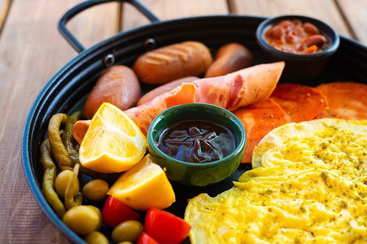 کوکتل دودی، ژامبون گوشت، نیمرو، پیرونی + دورچین